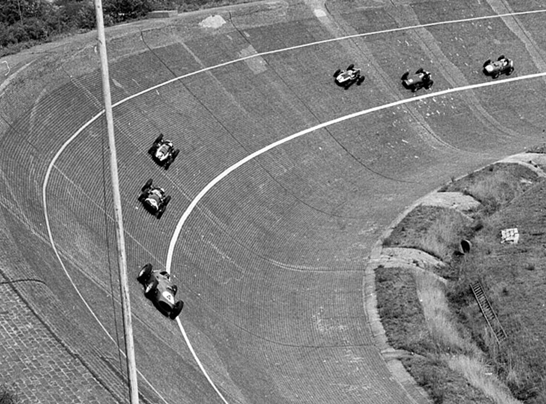 A non-championship Formula 1 race was hosted in 1954 and then in 1959, the first Formula 1 German Grand Prix which was won by Tony Brooks. By the early 1960′s Grand Prix were no longer raced on banked circuits and by 1967 the banking on the AVUS had been dismantled. Racing continued, but with only National Touring Car and Formula 3 events, and the track was shortened yet again. Despite some safety measures being introduced, the North Curve continued to claim lives and cause serious injury.